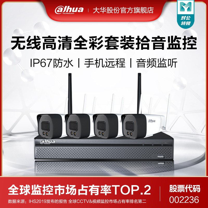 大華無(wú)線(xiàn)監(jiān)控器設(shè)備高清套裝家用遠(yuǎn)程手機(jī)4路夜視全彩室外攝像頭