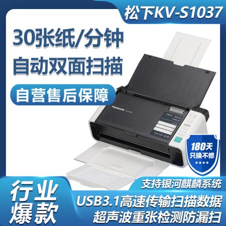 松下(Panasonic)KV-S1037 掃描儀A4高速高清彩色雙面自動(dòng)饋紙辦公文檔發(fā)票卡片 支持銀河麒麟系統(tǒng)