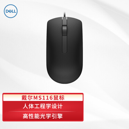 戴爾(DELL)MS116 鼠標(biāo)有線(xiàn) 商務(wù)辦公經(jīng)典對(duì)稱(chēng) 有線(xiàn)鼠標(biāo) USB接口 即插即用 鼠標(biāo) (黑色)
