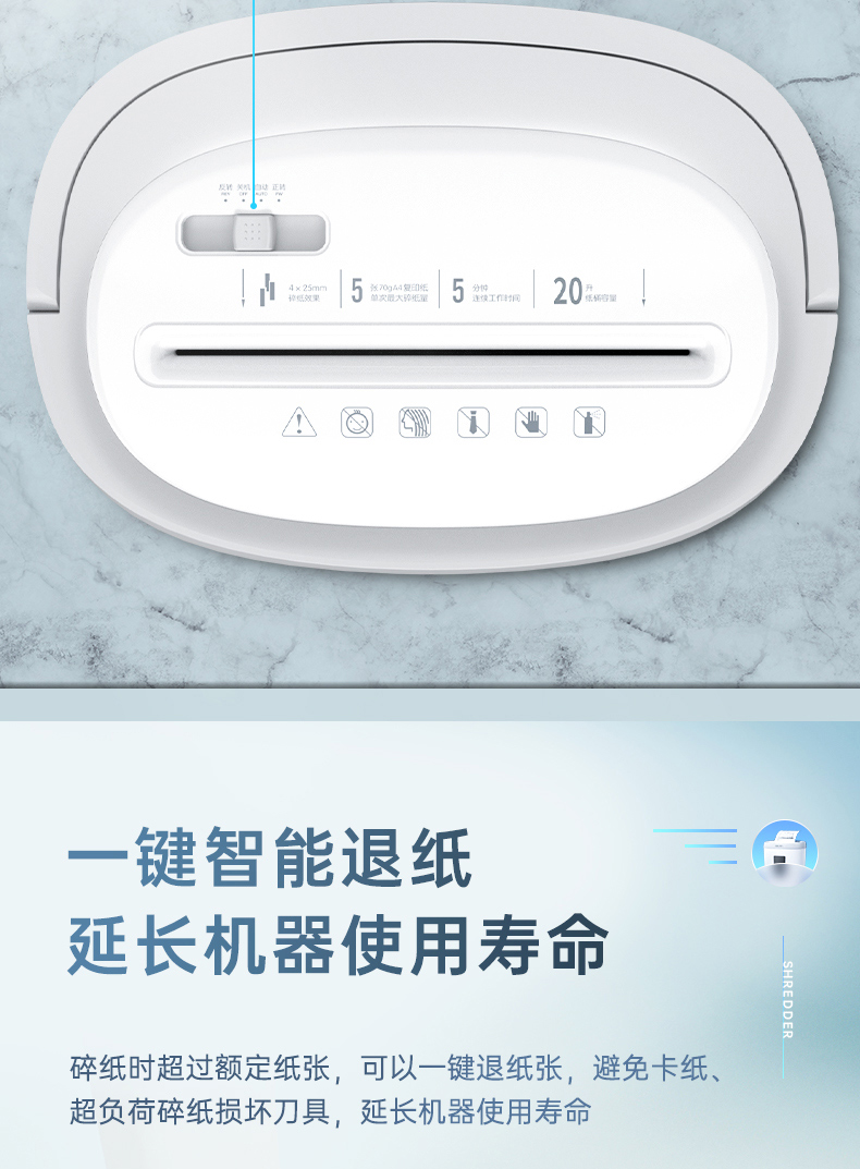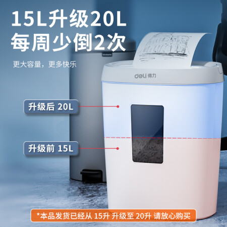 得力 deli 4級保密個(gè)人家用碎紙機(jī)(單次5張 20L 持續(xù)5分鐘 可碎卡)33186W 白