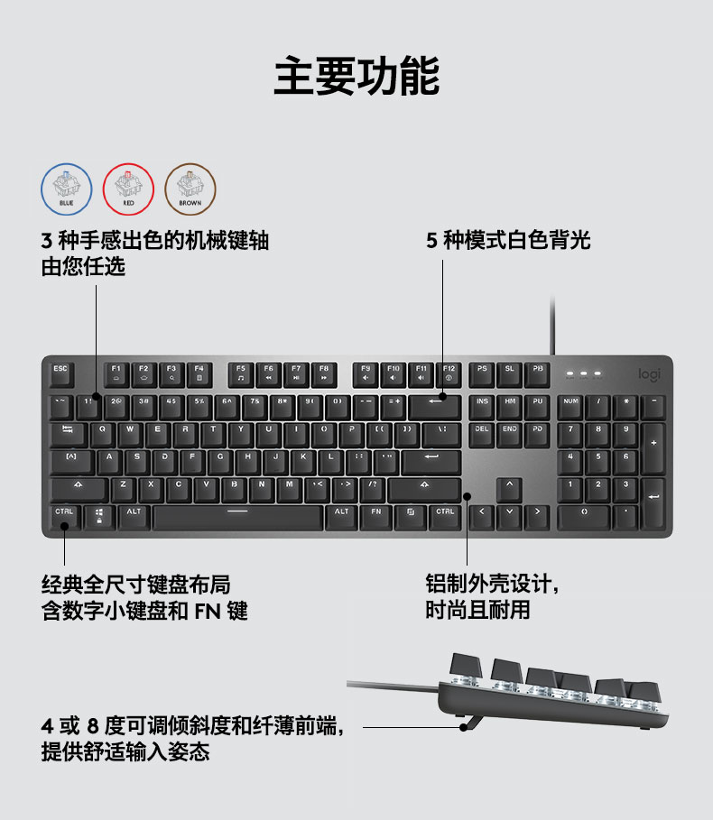 AOC GK410+MS100機(jī)械鍵盤鼠標(biāo)套裝 有線鍵鼠套裝 游戲辦公 電腦筆記本鍵盤 全尺寸 黑色 青軸¥109.00