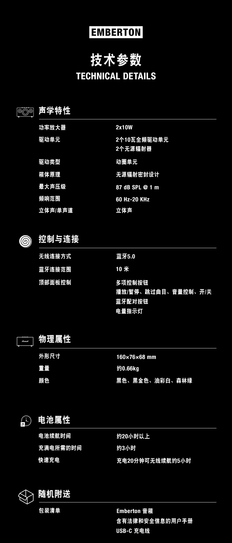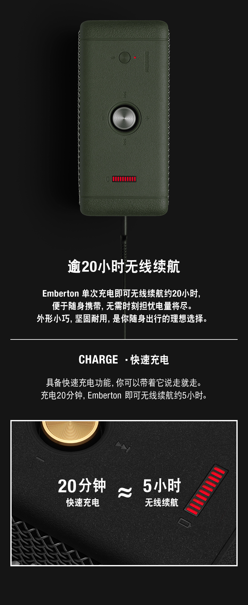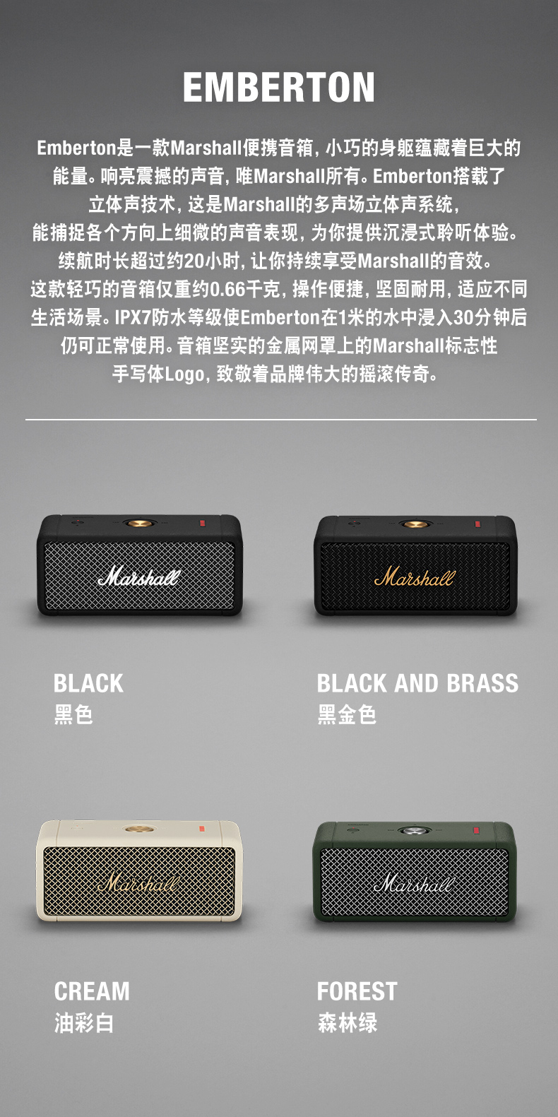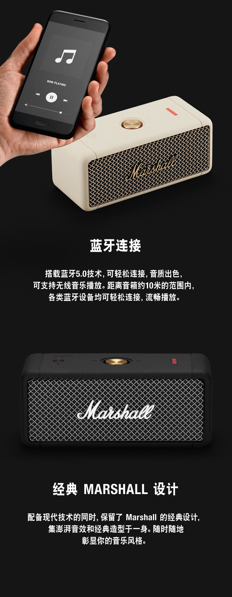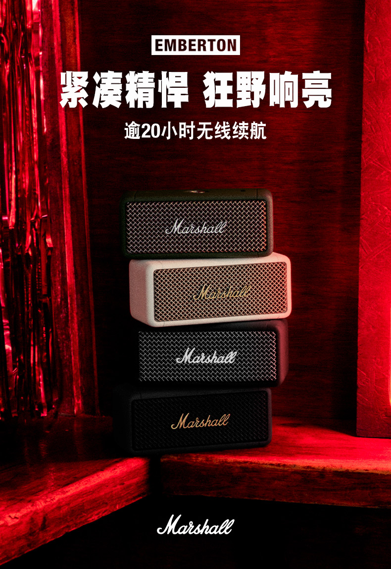 馬歇爾(Marshall)EMBERTON音箱便攜式無線藍牙家用戶外防水小音響 黑色